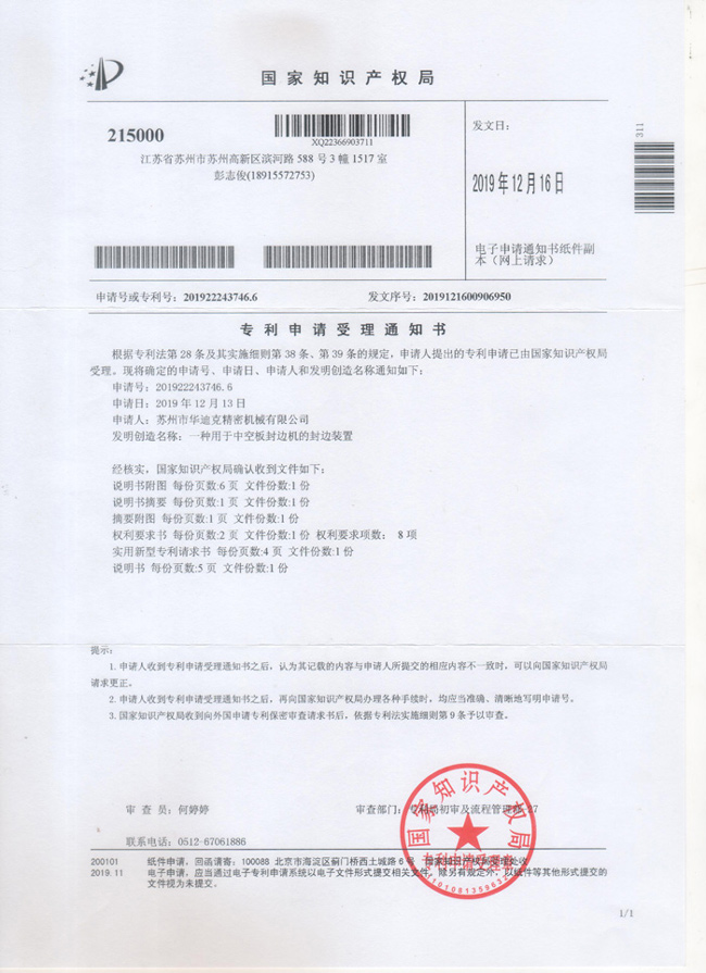 專利申請受理通知書201922243746.6